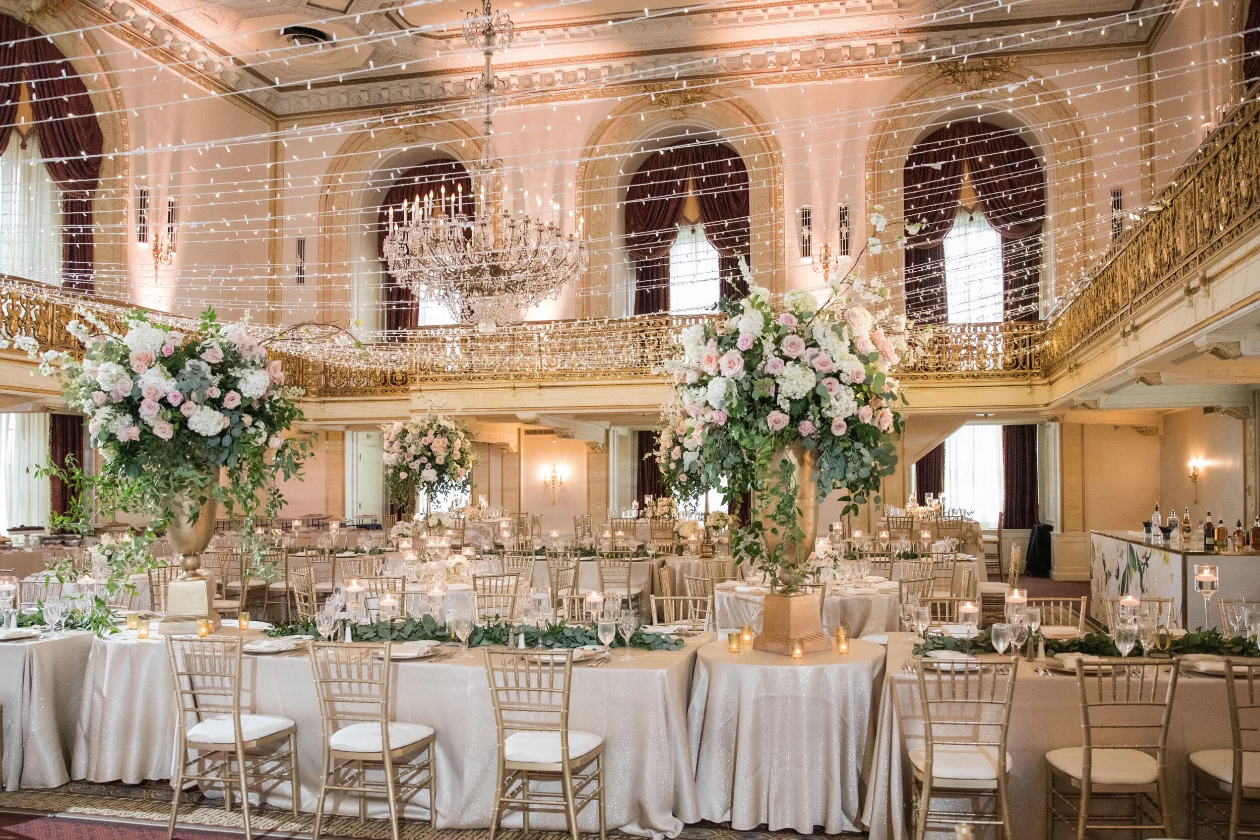 The weekend started off with a beautiful welcome reception on the rooftop of Hotel Monaco + then it was time to get these two married! When guests arrived to the reception at the Omni William Penn Ballroom, everyone’s eyes immediately looked up to the thousands of twinkling lights hanging above the entire ballroom. It was truly a dreamy site to see + set the tone for a magical night. From the custom wrapped dancefloor to the monogrammed greenery backdrop to the monogrammed cake, no detail was left untouched. SHE is so happy Christina + Will finally got to have their magical day + wish them all the love + blessings in the world!