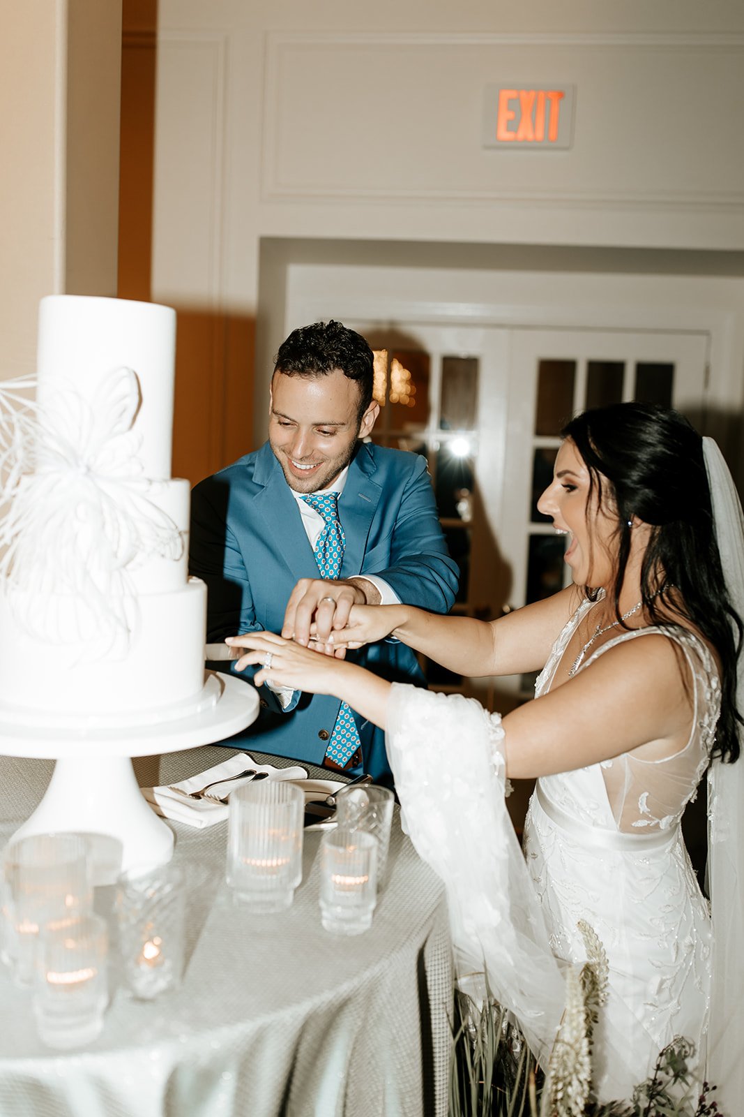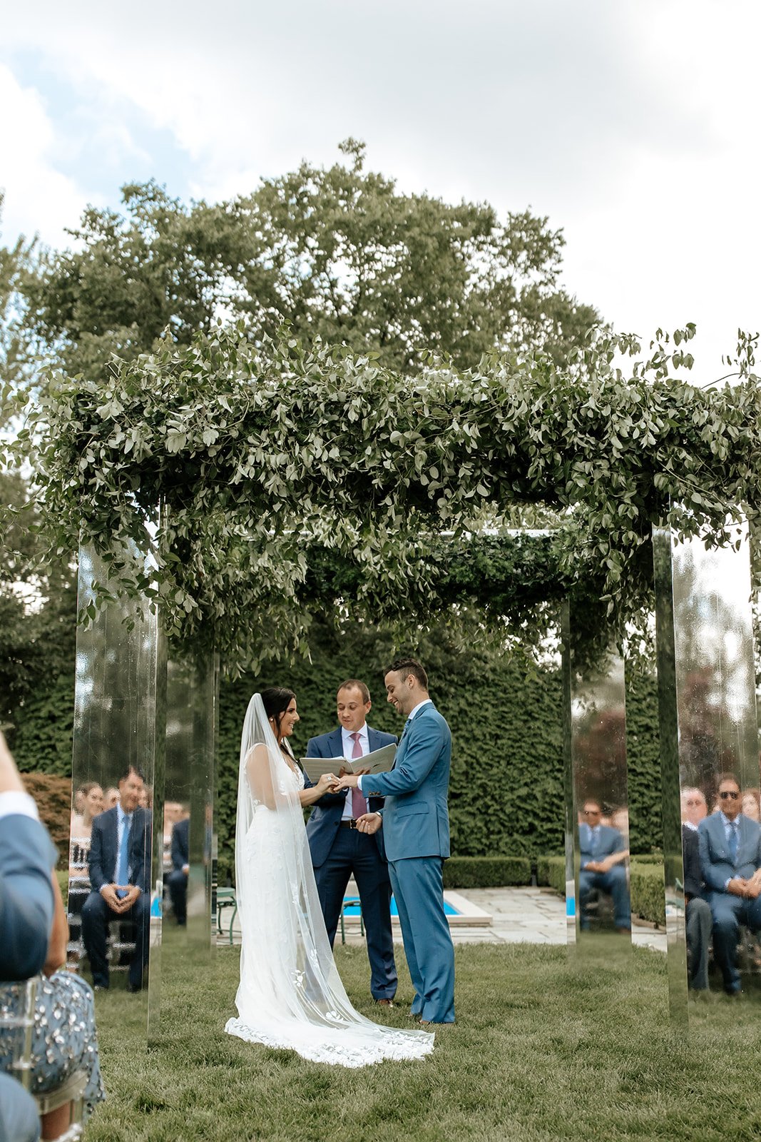 Lexie + Jordan’s wedding day was an intimate + chic soiree that not even a little unexpected rain could ruin. With less than an hour until ceremony, the skies opened + down came the rain. However, Lexie + Jordan’s love proved too much for mother nature as the skies miraculously cleared just in time for Jordan to wait for his bride in front of a stunning mirrored + greenery filled chuppah. After the ceremony, guests traveled to The Pittsburgh Field Club where all of Lexie + Jordan’s favorite “buds” found their place card from the custom floral seating display. The dinner ballroom was a twinkle light fairytale with gorgeous velvet linens + beautiful florals to compliment. The entire day was eloquent + stylish + SHE was so happy to play a part in Lexie + Jordan’s love story.