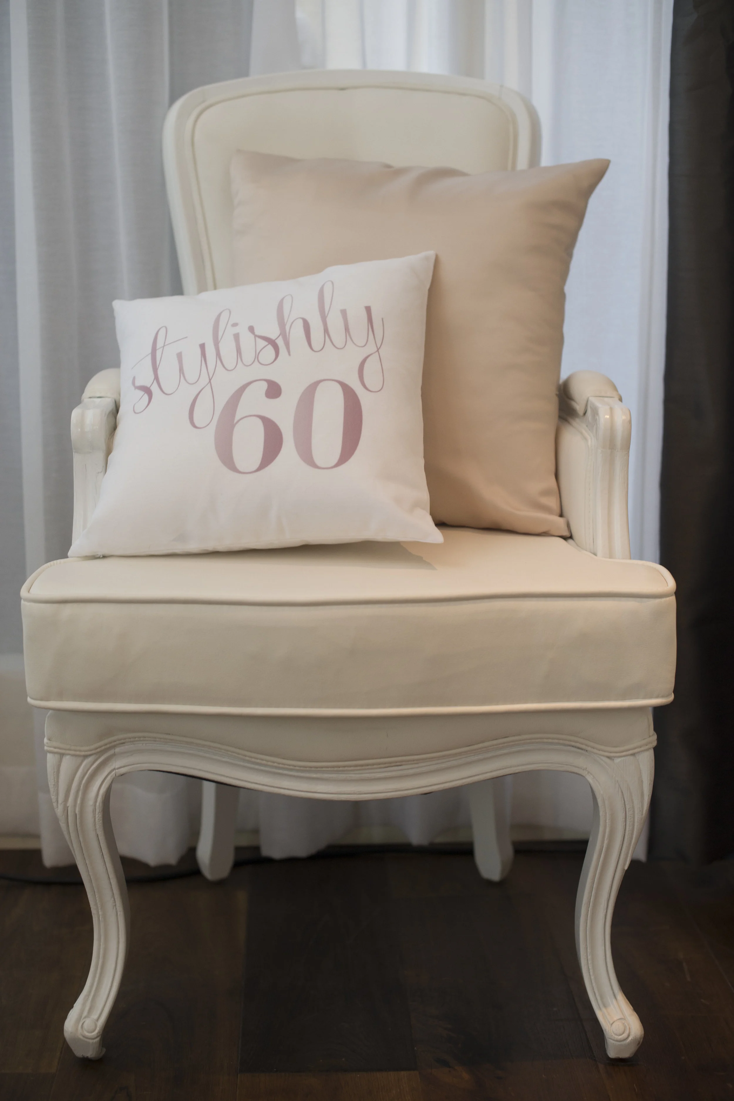 {SHE} has had the pleasure of knowing Roberta for several years and she has always been admired for her sweet personality, warm heart, love for family, + of course her impeccable taste. So when we were asked to plan her surprise 60th birthday party, we knew this definitely needed to be a stylish celebration to match the guest of honor. Hotel Monaco's rooftop space + Rialto Suite provided the absolute perfect backdrop for this soiree. With a trendy yet elegant color palette of blush, ivory, rose gold + taupe, the space was decked out with ultra chic linens, lounge furniture, custom pillows, jaw-dropping floral designs + the focal point -- two 9' boxwood walls with a photo montage of Roberta + her favorite people in rose gold frames. Because the details didn't stop just there (because duh -- we are #detailsnobs) guests could reminisce of commemorative events that occurred the year Roberta was born on ivory + rose gold foil cocktail on napkins + enjoy a lengthy list of what made the birthday girl just so so so special on customized acrylic signage. Also, knowing that coffee flavored ice cream was one of her favorite desserts, it was a no-brainer to serve it in delicate coffee cups made out of chocolate! About 60 (how appropriate!) of her closest family + friends patiently awaited Roberta's arrival, who thought she was simply attending a work event for her son-in-law, Simon. As she gracefully walked through the doors, thinking nothing of it, she was overwhelmed with wonderful emotion as everyone shouted "Surprise!" Love engulfed the chic space throughout the entire night with tears of happiness, big smiles + loads of laughter. Skysight Photography images captured every deed + every moment beautifully!