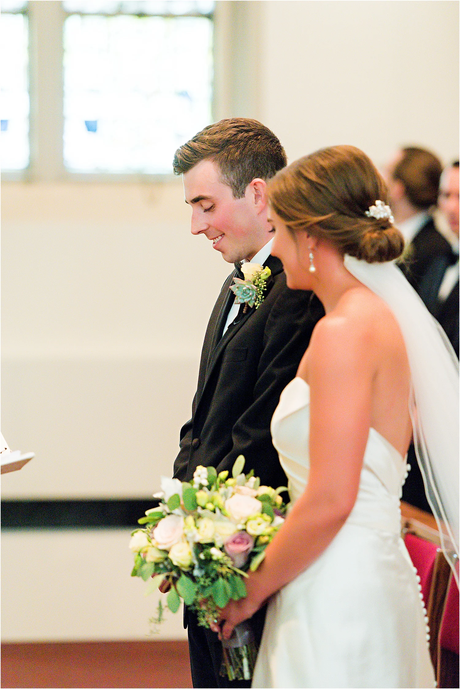 The stylish blush + pale pink design with gold accents was exactly the elegant + classic look Annemarie + Luke envisioned for their wedding! This couple started their ceremony at the Chapel of the Holy Spirit at Duquesne University + from there, guests celebrated Annemarie + Luke’s union at The Priory. The Priory’s beautiful + historic setting was enhanced with a mix of high + low floral statement pieces + greenery. Every detail was perfect down to the calligraphy seating chart + table numbers. The pinks, gold, + metallic created a contemporary ambiance at this alluring venue. {SHE} loved creating this memory for Annemarie + Luke. We wish them endless love + happiness!