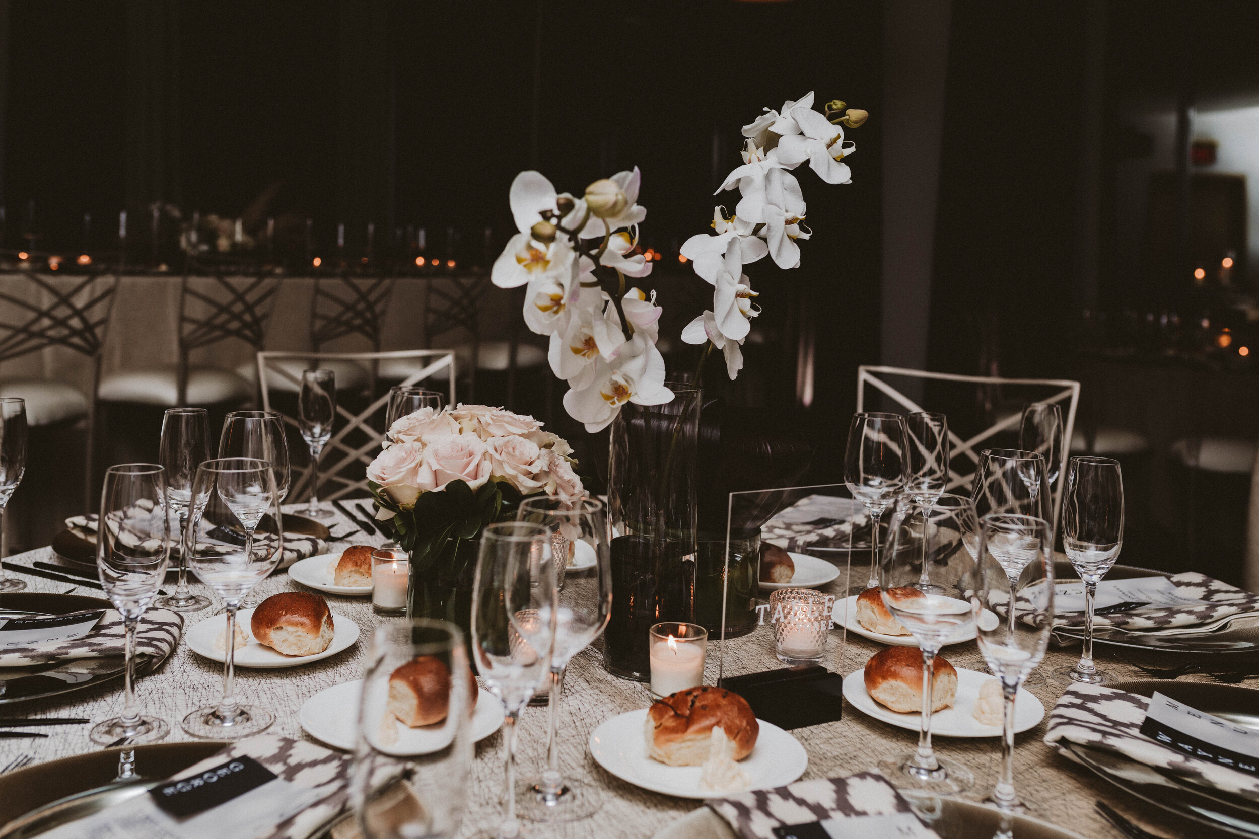 After the ceremony, guests traveled to the newest + trendiest hotel, The Oaklander, where the event space is located above the city on the top floor creating sweeping views of the city. Guests were able to find their seat from the custom black acrylic wall that read, Our Favorite People + later transitioned into the perfect photo back drop as the night progressed. An overflowing cascade of chic balloons marked the entrance to the ballroom where the designs only became more breathtaking! Take a look at the pictures below to see more of Kaelyn + Steve’s gorgeous wedding.