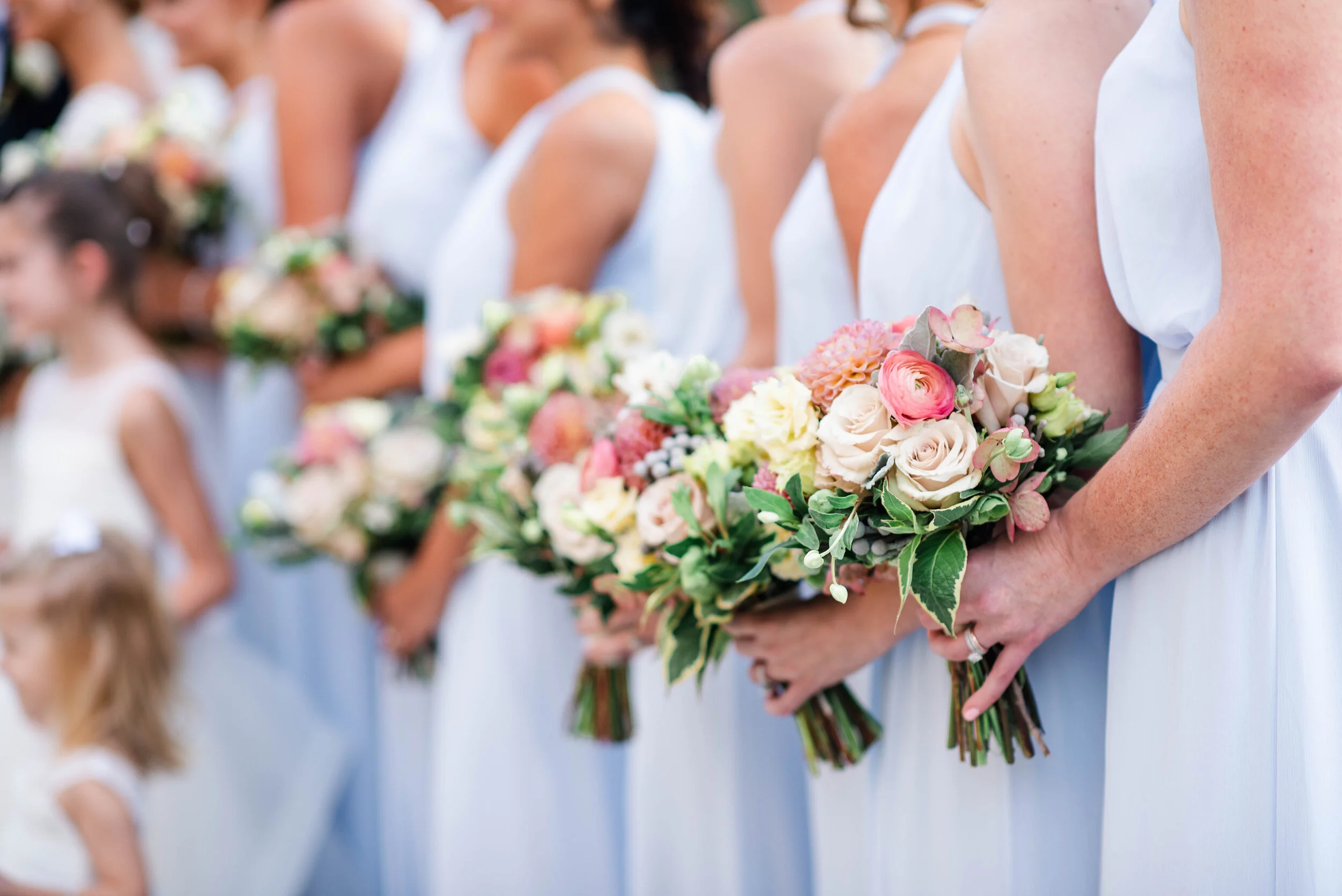 As delicately as the seasons change, SHE tiptoed into Fall with the stunning wedding celebration of Meghan + Matt. With an early September wedding, the design + decor hinted at the crisp weather that was to come with phenomenal velvet elements all while being reminiscent of warmer summer evenings with hues of slate blue + gray with pops of mustard, peach, + gunmetal. The inviting palette + decor, which consisted of an abundance of candles + crystal from the candelabras, clear glass tables + Pittsburgh Field Clubs’s chandeliers that dripped of rich greenery, paralleled the warm, genuine personalities of the newlyweds. What topped off the night was watching the couple share their first dance atop of a custom slate blue dance floor with a pewter lacy laser cut pattern that perfectly framed them.